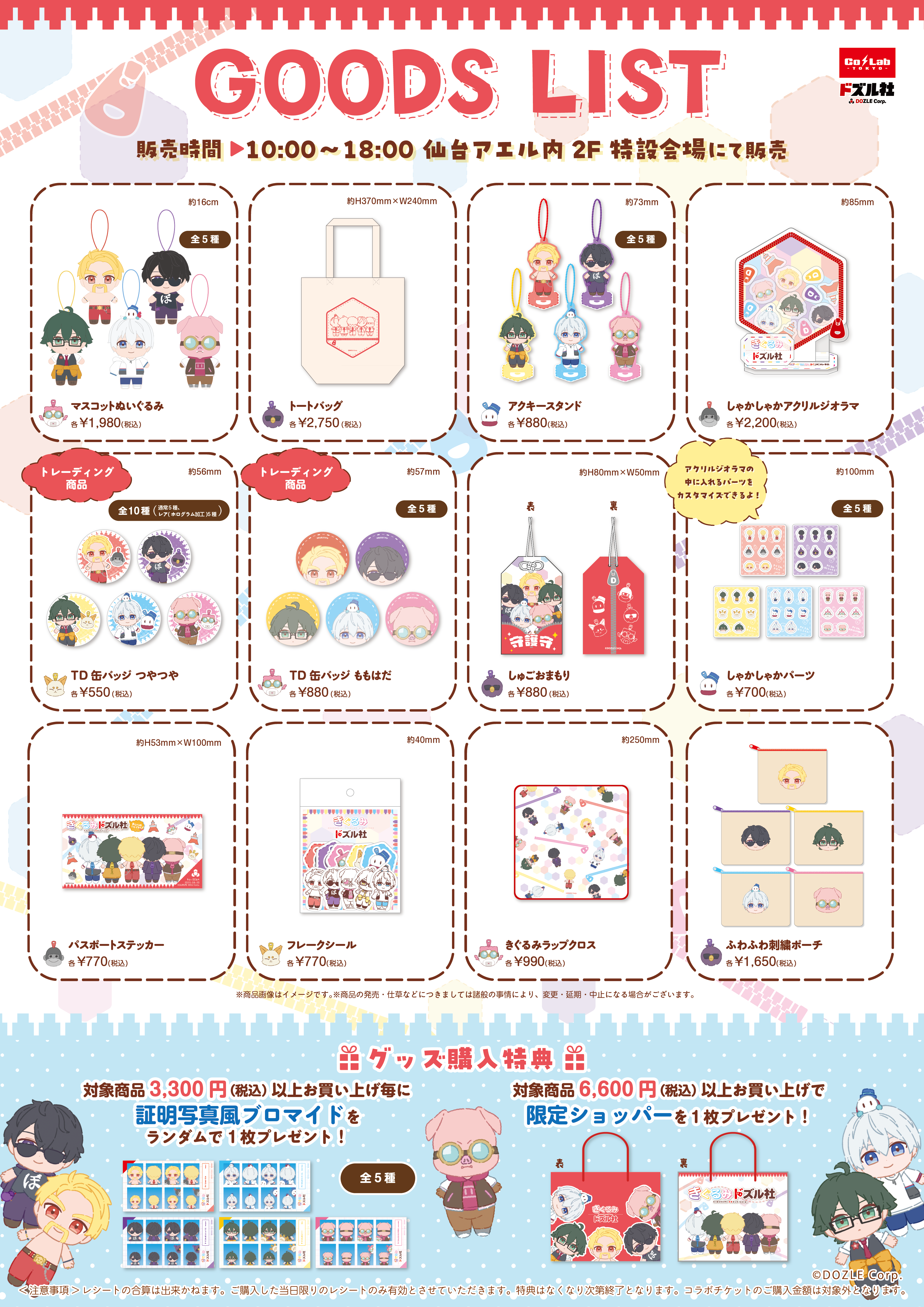 撮影会当日、3,300円(税込)以上のコラボグッズを購入で特典の証明写真風ブロマイド(ランダム1枚)に加え、